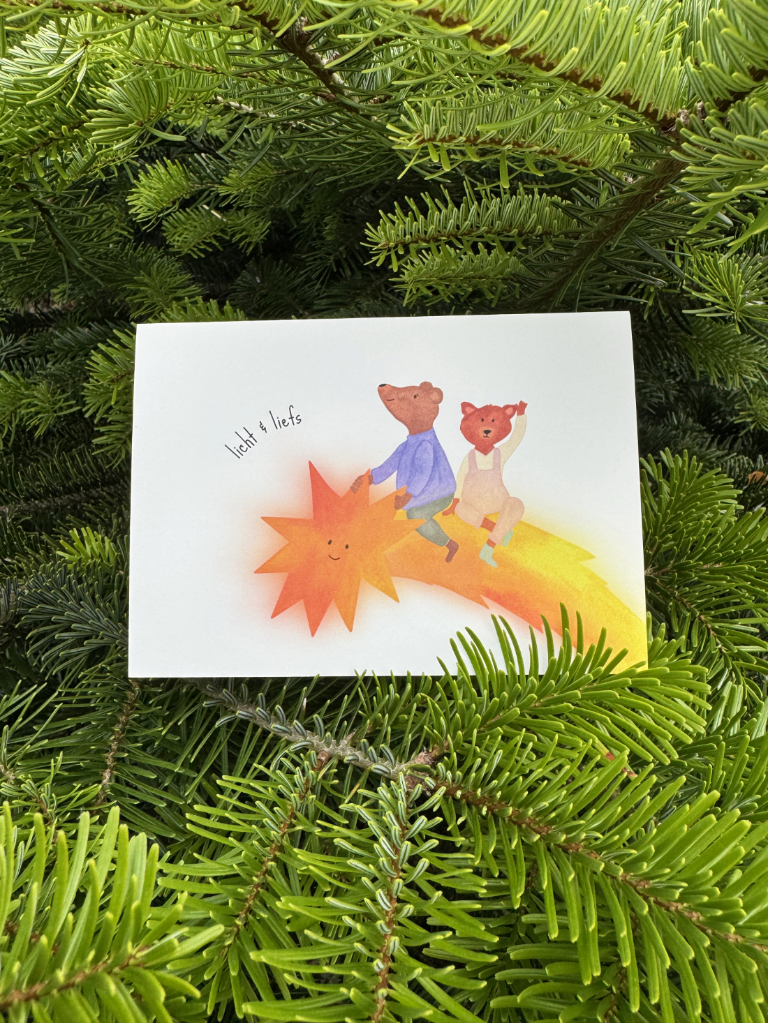 dubbele wenskaart – licht en liefs – en een beetje geluk