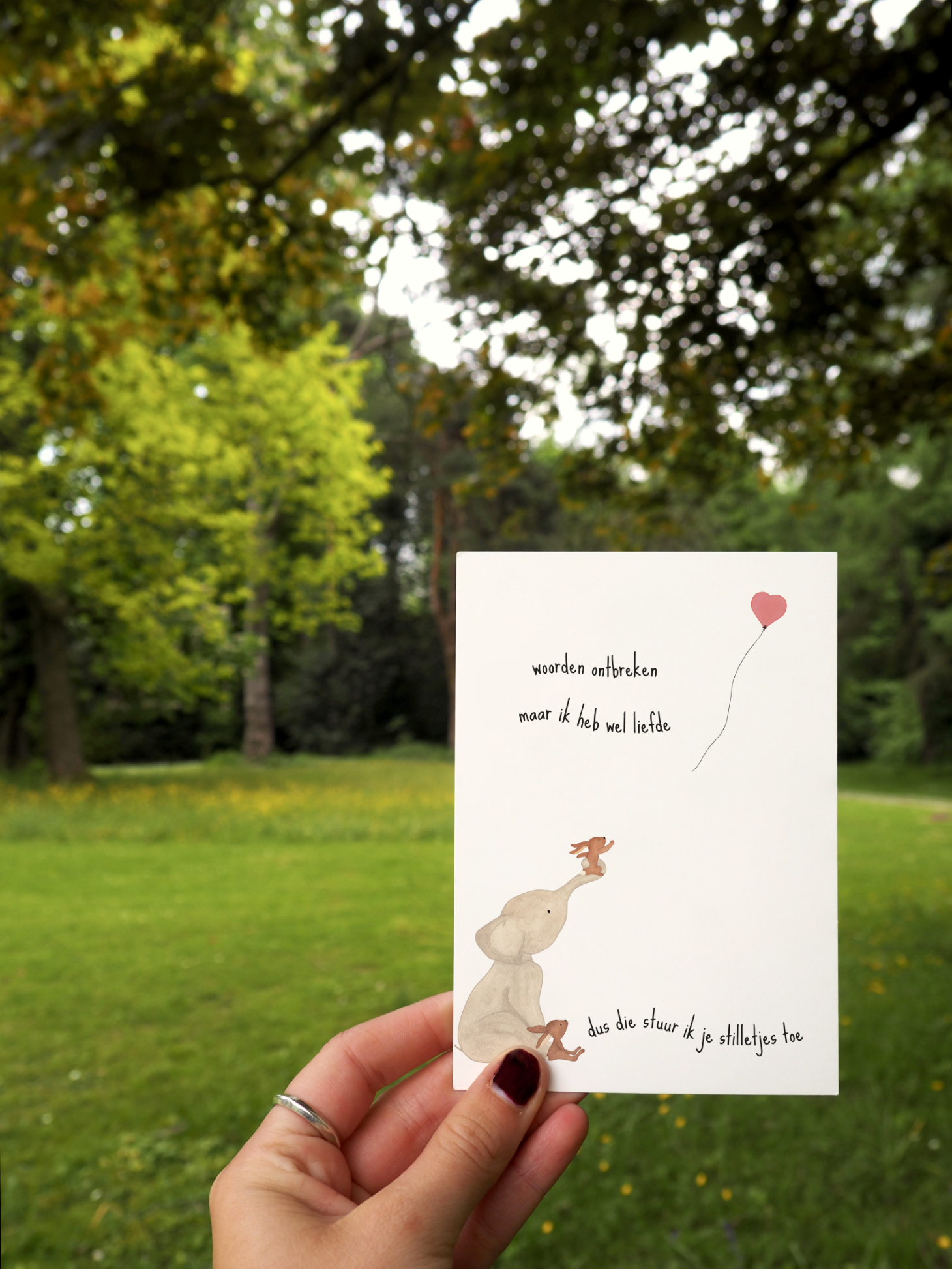 Een kaart die perfect is voor momenten waarop woorden tekort schieten maar je toch nabijheid wil tonen. Met deze troostkaart laat je iemand voelen dat ze gedragen worden in liefde, zonder dat er grote woorden nodig zijn. Een stille, zachte steun bij rouw, verdriet, ziekte of moeilijke dagen.