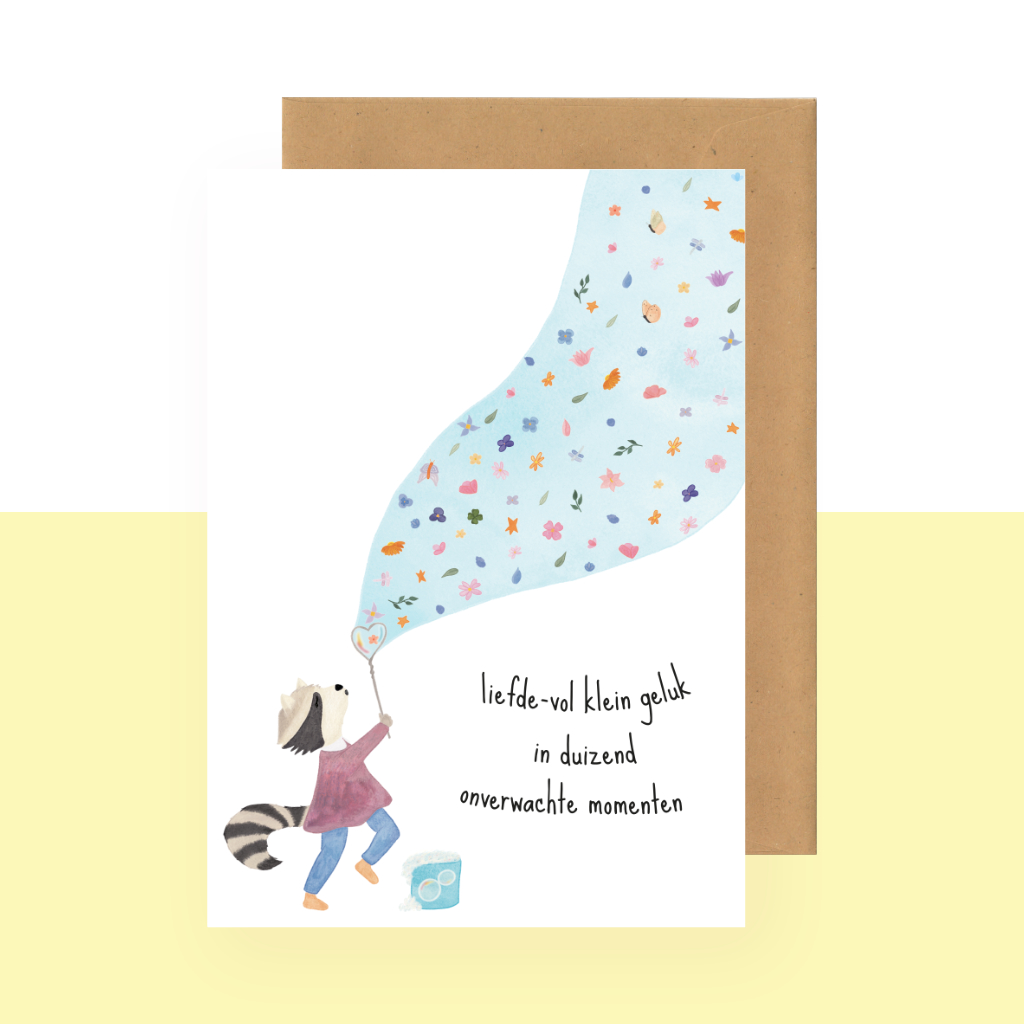 Soms zit geluk niet in grote dingen, maar in kleine lichtpuntjes die onverwacht opduiken. Een warm gebaar. Een glimlach tussendoor. Iets liefs op precies het juiste moment. ‘Liefde-vol klein geluk in duizend onverwachte momenten’ is een kaartje dat daarbij stil mag staan. Een warme, veelzijdige kaart om iemand wat liefde, hoop of zachtheid te sturen. Voor een verjaardag, een hart onder de riem, een dankjewel of zomaar. Om te zeggen dat er, zelfs tussen alle gewone dagen door, nog altijd kleine stukjes geluk kunnen oplichten. Een liefdevol kaartje voor wie je iets moois wilt toewensen.